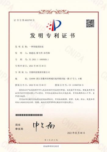 農(nóng)歷虎年春節(jié)剛過,就連連傳來喜訊,公司去年6月9日和8月30日申報(bào)的兩項(xiàng)發(fā)明專利,歷時(shí)半年多,經(jīng)過材料審查和審查員授權(quán),智能消防泵于2022年2月8日被授予了發(fā)明專利證書,專利號(hào)為:ZL 2021 1 1003928.1;節(jié)能型變?nèi)荼糜?022年2月11日被授予了發(fā)明專利證書,專利號(hào)為:ZL 2021 1 0641247.1